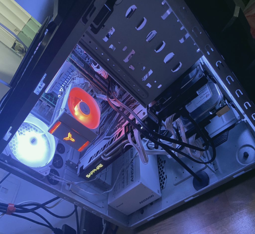 它也真正成为了我第一台能满足我使用需求的电脑,随后我做出了一个重大决定——抛弃了我的老伙计一体机,由于它的性能过于孱弱,即便我把它的处理器从i5-4460T更换到了i7-4770T,在mini pcie接口上外接了一张RX590(由于这个接口的带宽过低,导致RX590的性能只发挥出了一点点),看到这里你们可能会问,为什么不换固态硬盘,但是对于当时的我来说,1T的sata固态我也买不起(这台电脑的数据很多)只能放弃,随后组装了一台台式机,显卡用的原来一体机上外接的RX590,CPU用的E5-2676 V3,硬盘用了两块256G的NVME固态和两块sata机械,总计是3.5TB,内存用了4根8G服务器ECC内存,总计32GB